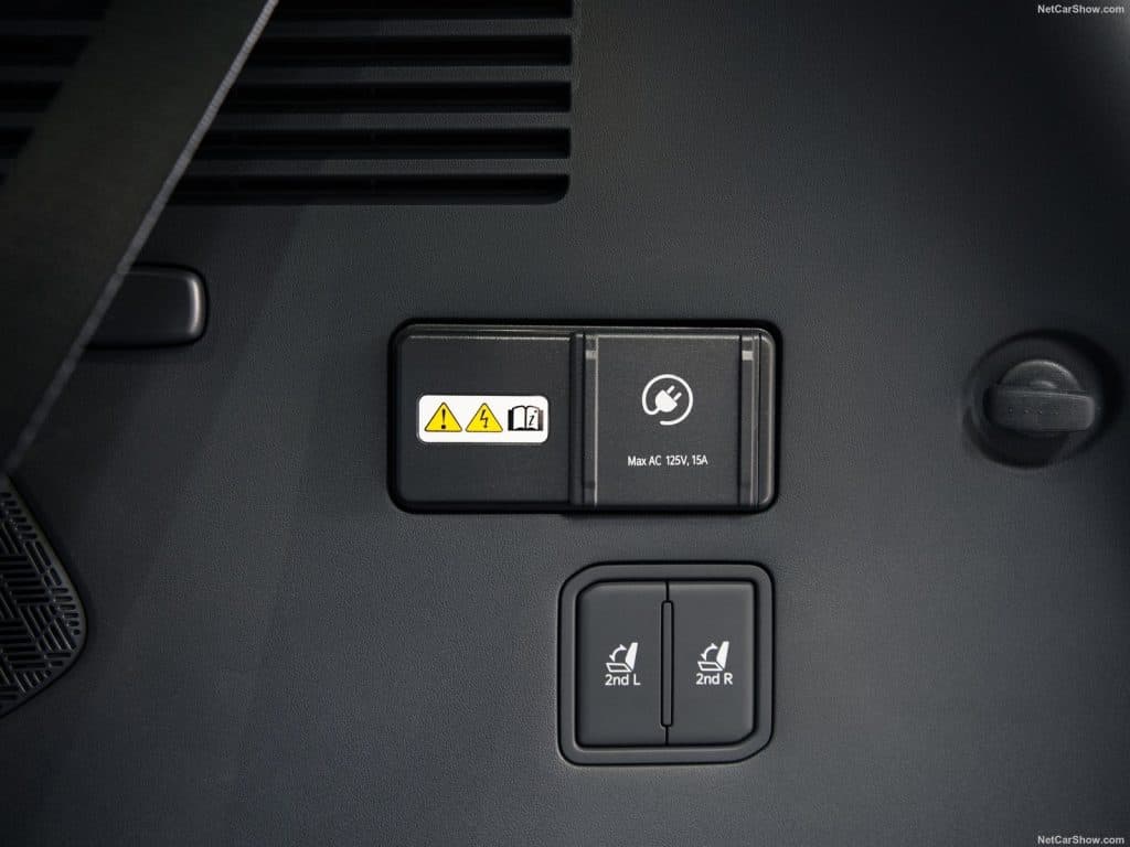Bilen är en portabel strömkälla till alla tänkbara bekvämligheter. Det finns ett uttag inuti bilen och ett utanpå: Total uteffekt är 4 000 W.