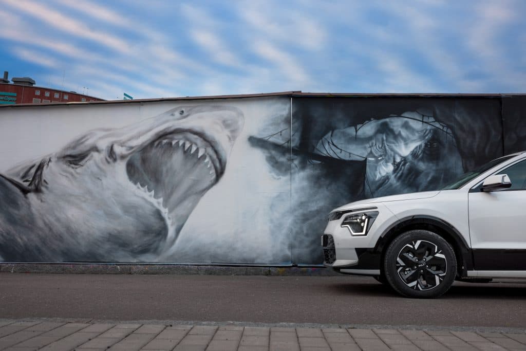 Det är den ambitionen som nyfikna förbipasserande kan se även i helt nya Niro EV. Bilen som har sina rötter i konceptbilen HabaNiro som visades vid bilsalongen i New York 2019. Måsvingedörrarna är visserligen borta, men C-stolpen bak med sitt karaktäristiska luftintag som förbättrar aerodynamiken finns kvar, liksom frontens tigernostema och varselljusens hjärtslagsgrafik.