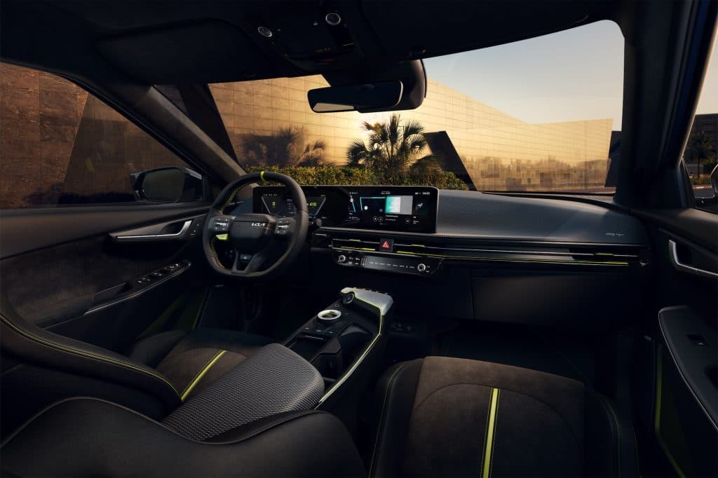 Både utanpå och inuti finns det flera saker som gör att GT-versionen sticker ut. Bland annat har stötfångarna, grillen och diffusorn fått ett råare uttryck. Den neongröna färgen från bromsoken går igen i interiören, på de skålande sätena i mocka samt på ratten, där den neongröna GT-knappen lockar med att frigöra bilens fulla potential.